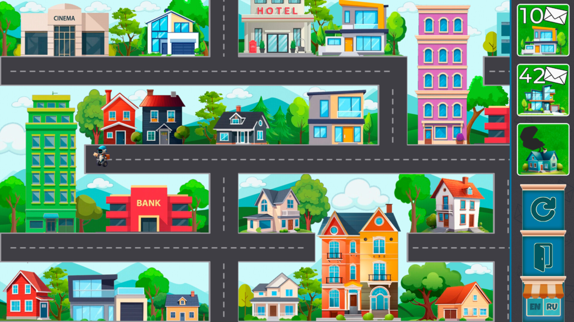 В каждом городе тебя ждёт особый заказ. Разгадывай головоломки, ищи короткие пути и следи за тем, чтобы каждое письмо дошло до адресата.
