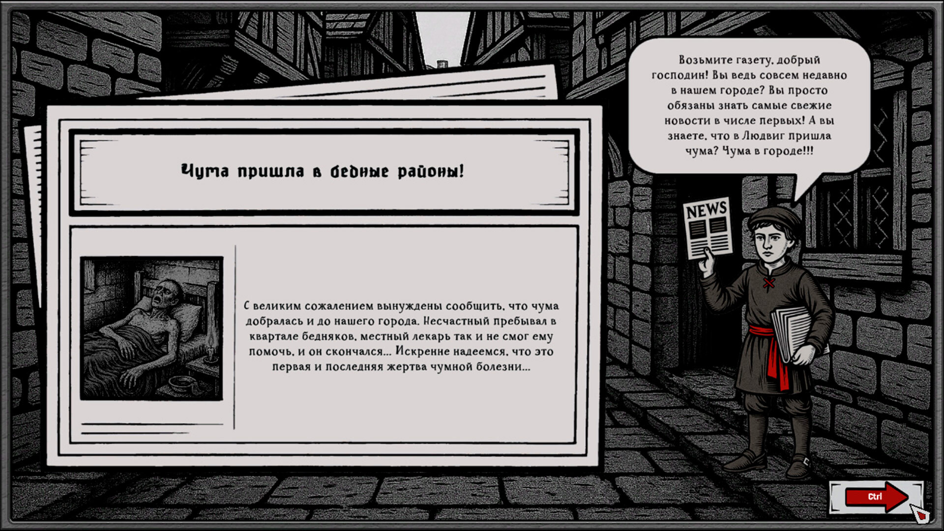 Чума не разбирает чинов и состояний. Людвиг погребён под грузом смерти, паники и отчаяния. Но ваша битва — не только с болезнью. Вы сражаетесь с её наследием: с ложью, что ползёт по улицам, со страхом, что отравляет души, с безумием, что правит умами, и с грудами тел, которые некому предать земле.