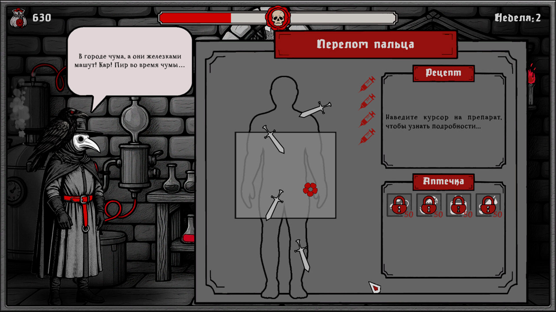 Покупайте редкие рецепты, смешивайте снадобья, создавайте эликсиры — и помните: чем сильнее лекарство, тем выше цена ошибки. Ваша цель — не просто стать лучшим лекарем. Ваша цель — спасти тех, кого ещё можно спасти.