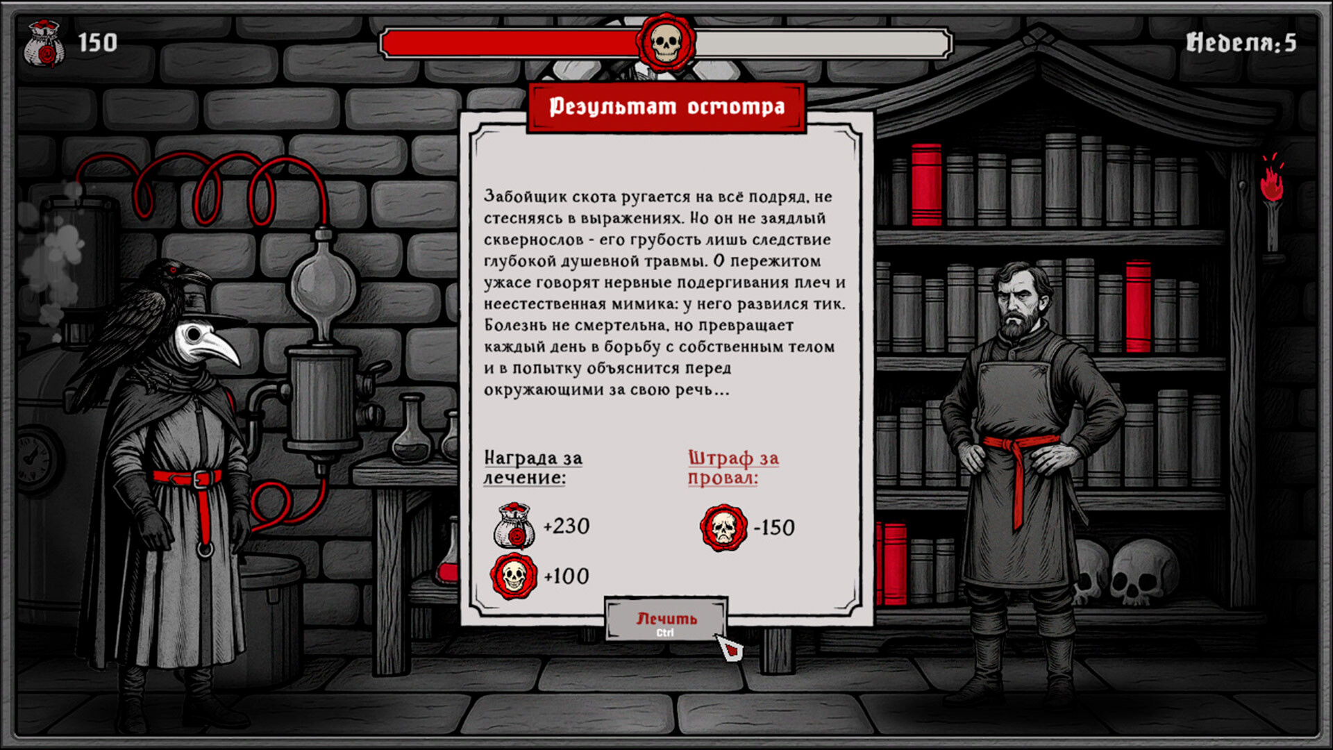 Игра разделена на недели, и каждая из них — борьба на пороге смерти. Диагностируйте хвори, сражайтесь с болезнями в напряжённых мини-играх и творите чудеса в дымящемся дистилляторе.